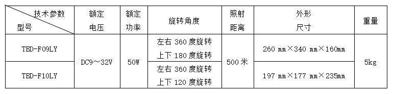 产品简介 TBD-F09LY是一款高亮度的遥控户外照明灯,操作方便,可调角度大,照射距离远,可在户外提供高亮信号。 产品参数