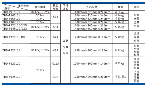 TBD-P120L1L-RB型排式警示灯装备于警车、救护车、工程救险车、消防车等特种车辆,具有外形新颖,安装方便、可靠性高、高亮度等特点,可配套警报器使用,已获得第三方检测报告。